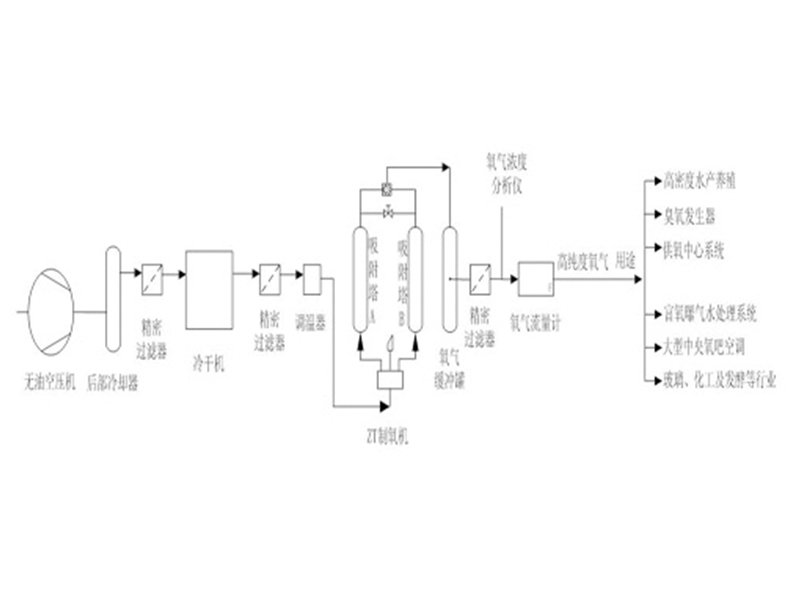空氣主要由氮?dú)猓?8%)、氧氣(21%)和少量其它氣體(占1%)組成,本裝置旨在利用先進(jìn)的分子篩物理吸附和解吸技術(shù)微電腦數(shù)碼測(cè)控技術(shù)相結(jié)合,實(shí)現(xiàn)制氧機(jī)內(nèi)裝填進(jìn)口分子篩,在加壓時(shí)可將空氣中氮?dú)馕剑S嗟奈幢晃降难鯕獗皇占饋?lái),經(jīng)過(guò)凈化處理后即成為高純度的氧氣。分子篩在減壓時(shí)將所吸附的氮?dú)馀欧呕丨h(huán)境空氣中,在下一次加壓時(shí)又可以吸附氮?dú)獠⒅迫⊙鯕?,整個(gè)過(guò)程為周期性的動(dòng)態(tài)循環(huán)過(guò)程,分子篩不消耗。系統(tǒng)原料為環(huán)境空氣,除空壓機(jī)和冷干機(jī)耗電外,再無(wú)其它消耗原料??山档褪褂酶邏貉鹾脱鯕馄康馁M(fèi)用和危險(xiǎn),免去更換氧氣瓶的復(fù)雜過(guò)程,及時(shí)安全提供純潔、穩(wěn)定、可靠、低成本的氧氣,是目前較經(jīng)濟(jì)的供氧設(shè)備。