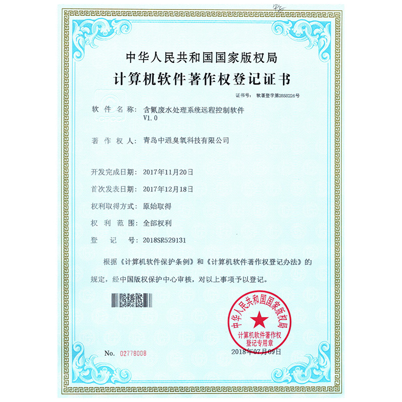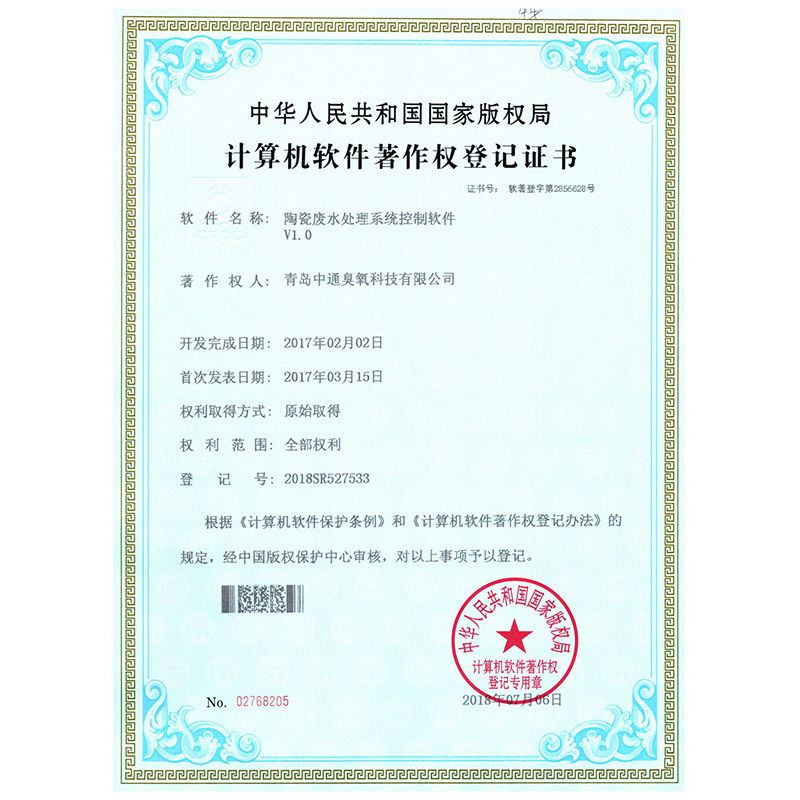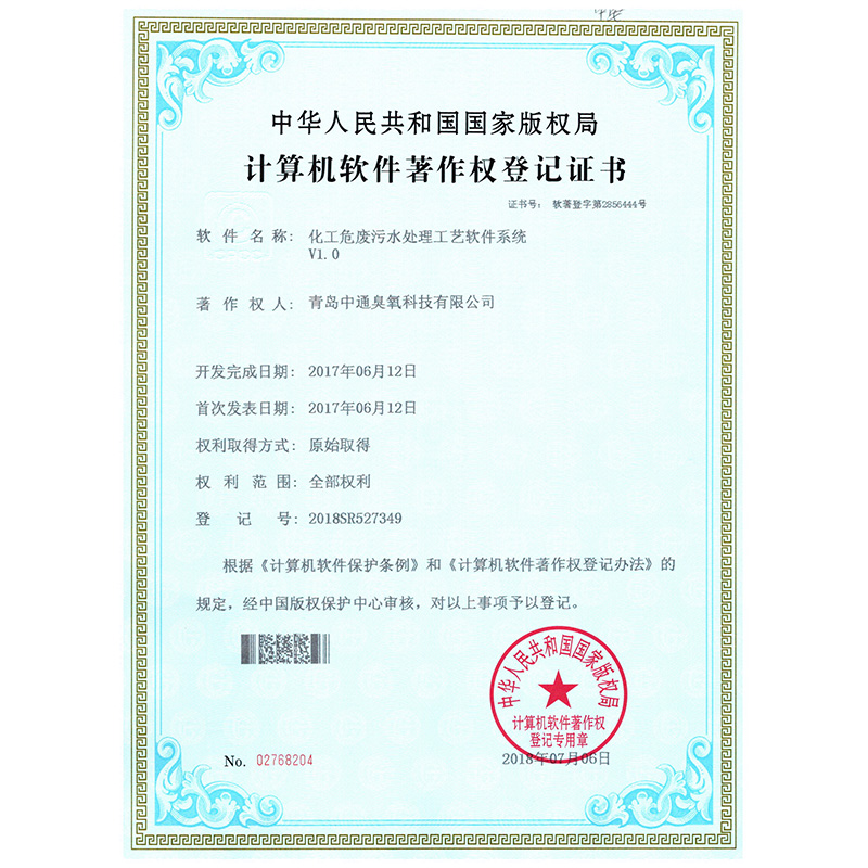 一種大型氧發(fā)生器冷卻水系統(tǒng)冷源回收循環(huán)利用裝置 一種催化氧化臭氧除臭系統(tǒng) 一種難降解工業(yè)廢水的處理工藝及裝置 異臭味氣及揮發(fā)性有機(jī)物凈化除臭裝置 污水廢水的COD降解裝置 一種大型臭氧發(fā)生器冷卻水系統(tǒng)冷源回收循環(huán)利用裝置 一種生活污水資源化利用快速處理裝置 一種具有水循環(huán)冷卻結(jié)構(gòu)的臭氧發(fā)生器 一種染料廢水處理臭氧發(fā)生器成套裝置 一種高級氧化垃圾滲濾處理用臭氧發(fā)生器 中通軟著 中通軟著 中通軟著 中通軟著 中通軟著 中通軟著 中通軟著 中通軟著 中通軟著 中通軟著 中通軟著 中通軟著 中通軟著